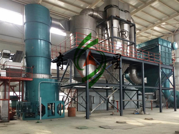 (2)干燥氣流進(jìn)入干燥室底部,產(chǎn)生強(qiáng)烈的旋轉(zhuǎn)氣流,對(duì)器壁上的物料產(chǎn)生強(qiáng)烈的沖刷帶出作用,消除粘壁現(xiàn)象。