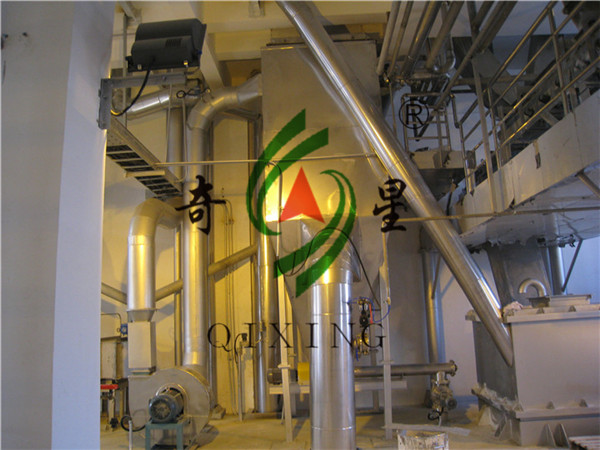 根據二氧化硅的特性,我們選用XSG旋轉閃蒸干燥機。XSG系列旋轉閃蒸干燥機熱空氣由入口管以適宜的噴動速度從干燥機底部進入攪拌粉碎干燥室,對物料產生強烈的剪切、吹浮、旋轉作用,于是物料受到離心、剪切、碰撞、摩擦而被除數微粒化,強化了傳質傳熱。在干燥機底部,較大較濕的顆粒團在攪拌器的作用下被機械破碎,濕含量較低、顆粒度較小的顆粒被旋轉氣流夾帶上升,在上升過程中進一步干燥。由于氣固兩相作旋轉流動,固相慣性大于氣相,固氣兩相間的相對速度較大,強化兩相間的傳質傳熱,所以該機生產強度高。
